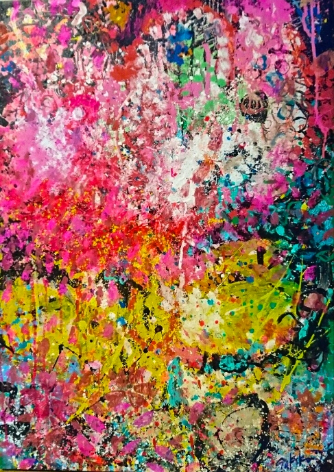 日韓展出品作品:タイトル・チューリップと桜のおしゃべり | Sakiko Tooyama Official Website